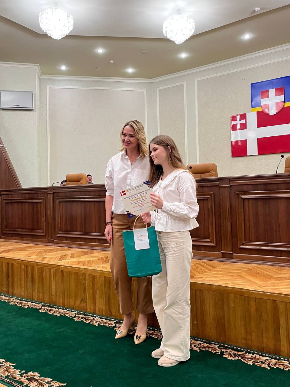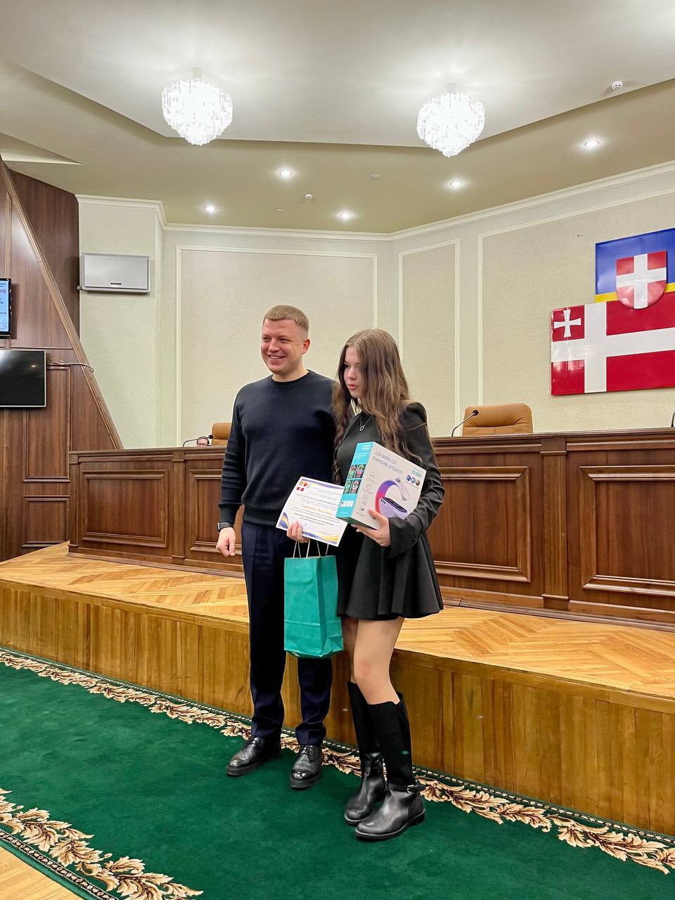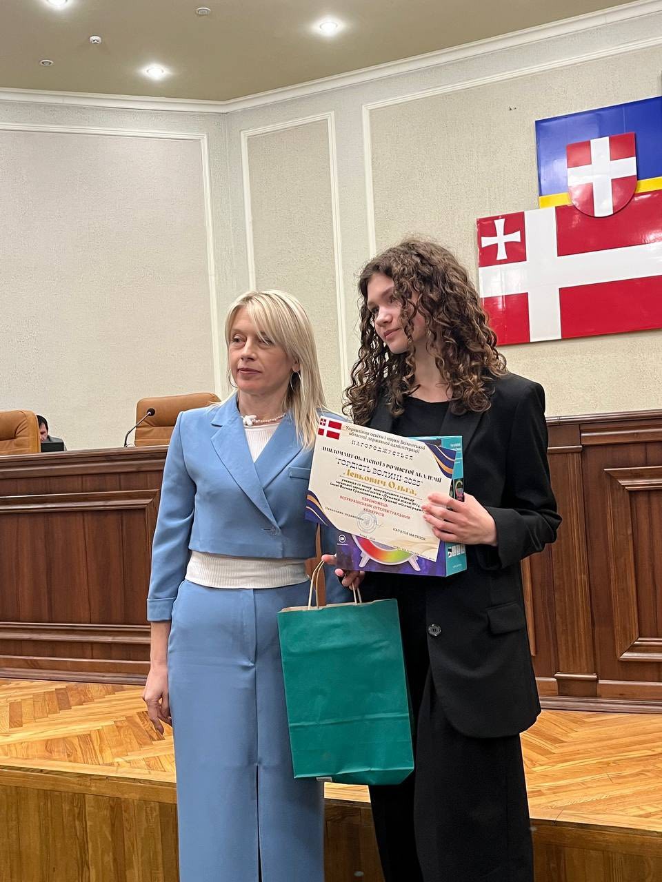 Із вдячністю до всіх присутніх звернулася учениця Заборольський ліцей Луцької міської ради Іванна Хотинська, яка розповіла свою історію успіху у Волинській МАН та передала символічний символ перемоги юним МАНівцям Ангеліні Шкуринській та Богдану Мажулі.