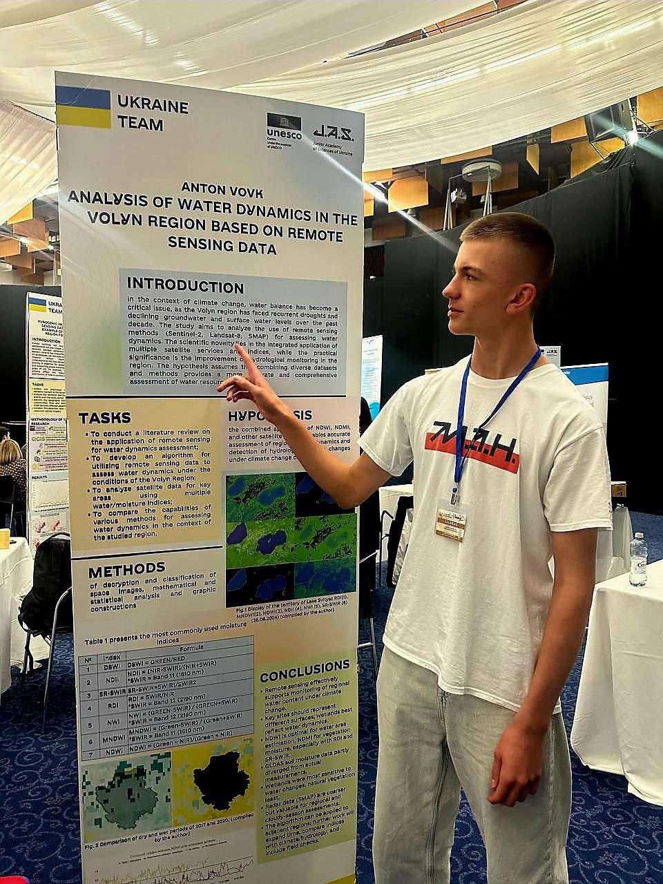 🥇 Антон Вовк, учень Волинського наукового ліцею Волинської обласної ради виборов золоту медаль за проєкт «Аналіз динаміки водності території Волинської області за дистанційними даними».