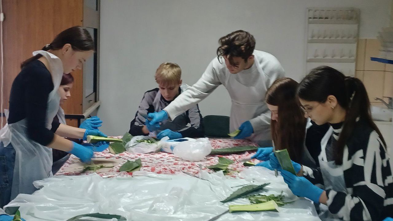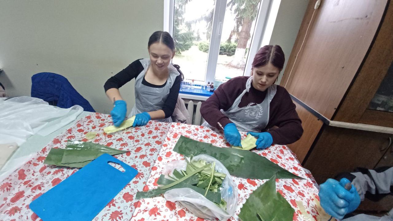Учасники власноруч готують заготовки з рослинної сировини, відпрацьовуючи професійні навички.