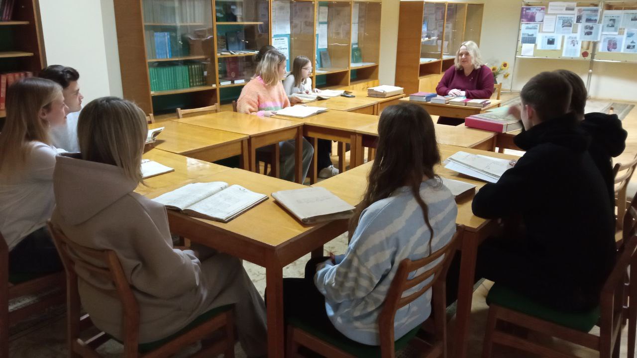 👩‍🏫 Любов Іванівна Коць, начальник відділу інформації та використання документів Національного архівного фонду, ознайомила учнів із фондозбірнею головного архіву області та особливостями роботи з архівними матеріалами.