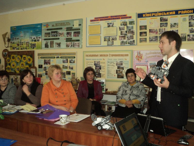 Великий інтерес у всіх учасників обласного семінару викликав майстер-клас з робототехніки, який продемонстрував Пахачук С.С., старший лаборант кафедри загальної фізики та методики викладання фізики СНУ імені Лесі Українки, керівник гуртка робототехніки ВО МАН.