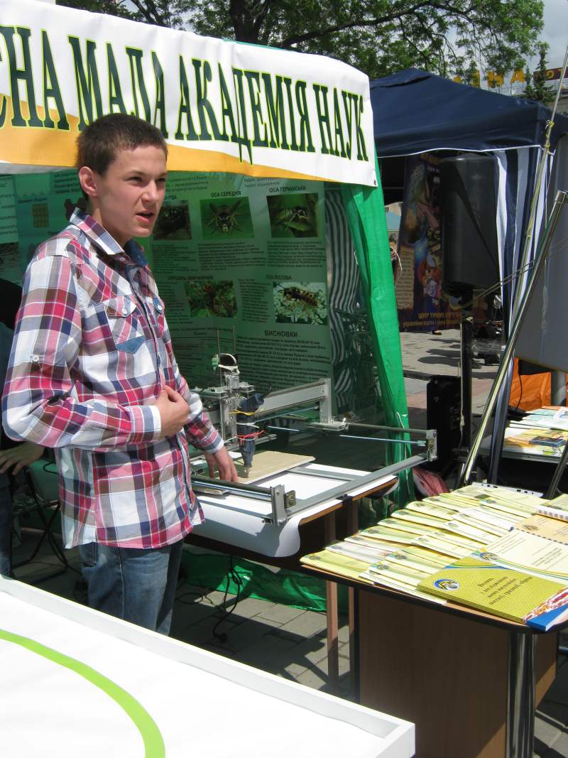 Ксьондзик Олександр, слухач секції технологічних процесів та перспективних технологій ВО МАН, представив універсальну установку «3D – Technology» з ЧПК зі змінним діючим устаткуванням. Відвідувачі цікавилися в юного винахідника про можливості 3D-принтера. Слухач охоче відповідав, що, можливо, через декілька років з допомогою 3D-принтера можна буде створювати різноманітні предмети (навіть вдома) для використання у побуті.