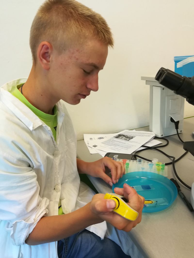 Ми займалися в лабораторії по вісім годин на день. Для навчання використовували сучасне обладнання. Мали змогу досліджувати власну ДНК, добували рослинний білок та вивчали його властивості, визначали особливості клітини і просто спостерігали за природою. Викладачі BioCEN демонстрували, як можна проводити елементарні досліди навіть у домашніх умовах, використовуючи підручні матеріали. Розповідали, як за допомогою камери мобільного телефона зробити мікроскоп і проводити експерименти. Також нам запропонували спробувати свої сили у криміналістиці: розповіли історію, в якій трапилося вбивство, і за допомогою лабораторних дослідів треба було з’ясувати, хто саме скоїв злочин.