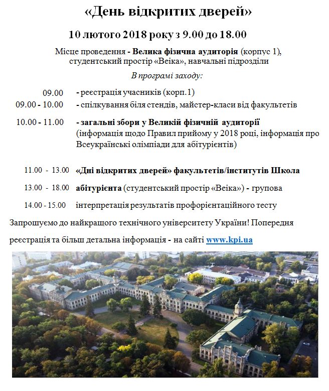 Національний технічний університет України «Київський політехнічний інститут імені Ігоря Сікорського» запрошує на «День відкритих дверей»