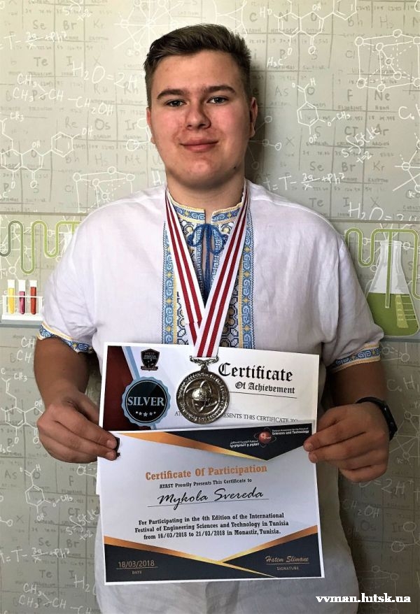 Україну на Фестивалі представляли троє манівців. Від Волинської області участь у Фестивалі на секції екології брав Свереда Микола, слухач секції електроніки та приладобудування комунального закладу “Волинська обласна Малої академії наук”, учень 11 класу комунального закладу “Луцький навчально-виховний комплекс “Гімназія № 14 імені Василя Сухомлинського” Луцької міської ради Волинської області”.