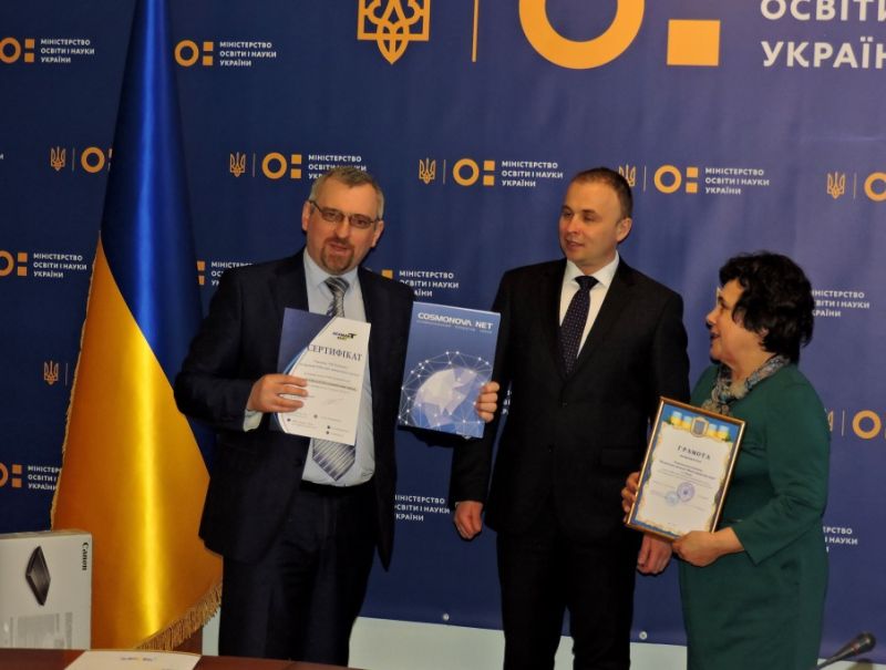 Організатори конкурсу нагородили переможців цінними подарунками та сертифікатами ТОВ «АДАМАНТ-ДС» на надання послуг хмарного сховища та COSMONOVA|NET на професійну освітню екскурсію для 10 кращих слухачів ВО МАН туди, де народжується Інтернет (центр обробки даних національного інтернет-провайдера).