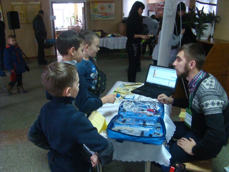 Відвідувачі заходу із захопленням керували роботами за допомогою пультів та мобільного телефона, спостерігали за рухами робота-скорпіона, транспортували дрібні деталі за допомогою робота-крана, позмагались з роботом у складанні кубика Рубіка тощо.