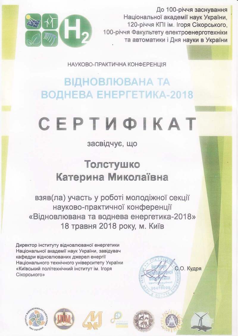 18 травня 2018 року в Національному технічному університеті України “Київський політехнічний інститут імені Ігоря Сікорського” пройшла науково-практична конференція “Відновлювана та воднева енергетика – 2018”, присвячена 100-річчю заснування Національної академії наук України, 120-річчю Київської політехніки і Дню науки в Україні.