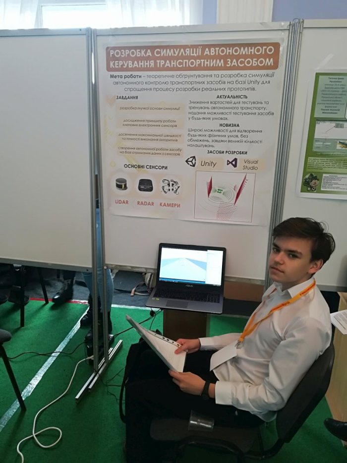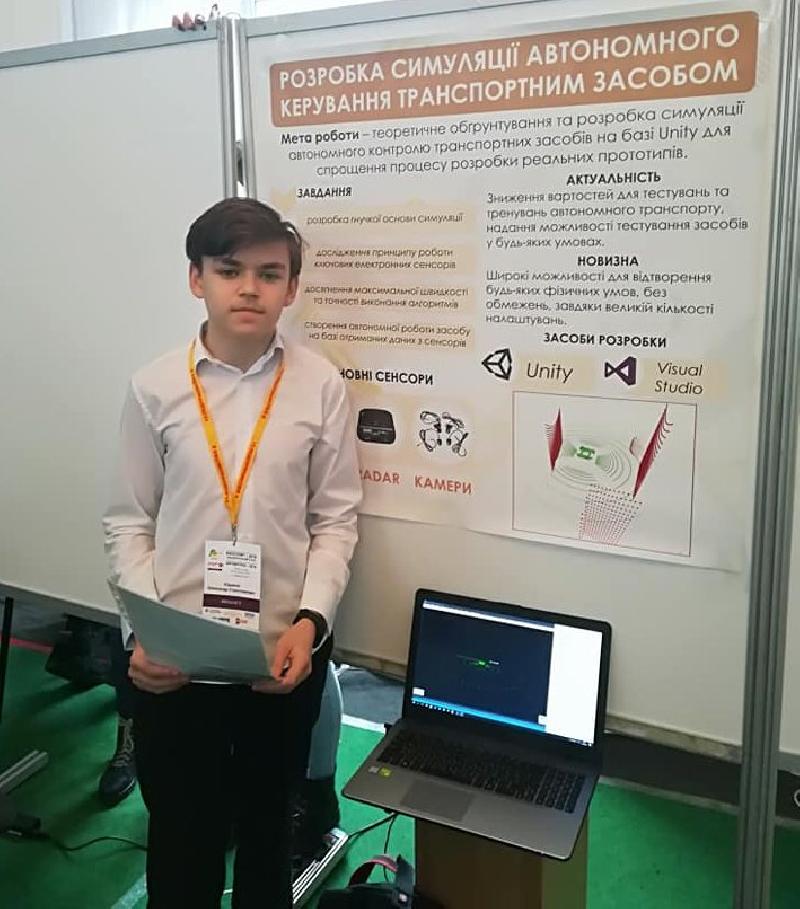 В результаті проведених змагань дипломом І ступеня у секції «Прикладні програми» нагороджений – Юдаков Олександр, учень 10 класу Луцької спеціалізованої школи І-ІІІ ступенів №5, з авторським проектом «Розробка симуляції автономного керування транспортним засобом».