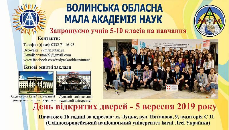 Запрошуємо на День відкритих дверей : Волинська обласна Мала академія наук