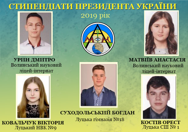 П’ятеро слухачів Волинської обласної МАН, переможців Всеукраїнського конкурсу-захисту науково-дослідницьких робіт учнів-членів МАН 2019 року, визнано Стипендіатами Президента України!