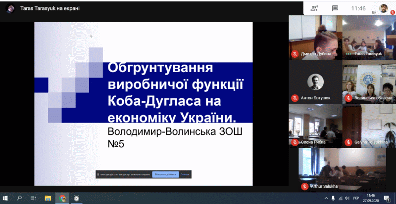 27 вересня 2020 року комунальна установа «Волинська обласна Мала академія наук» відкрила свій онлайн-простір для турнірних боїв юних економістів області. Команди міст Луцька та Володимира-Волинського в інтелектуальному герці дискутували про процеси діджиталізації в Україні, податки та суспільний добробут. Дискусії, хоч і проходили віддалено, були цікавими та динамічними, а влучні питання досвідчених членів журі допомогли визначити кращих в командній та індивідуальній першості.