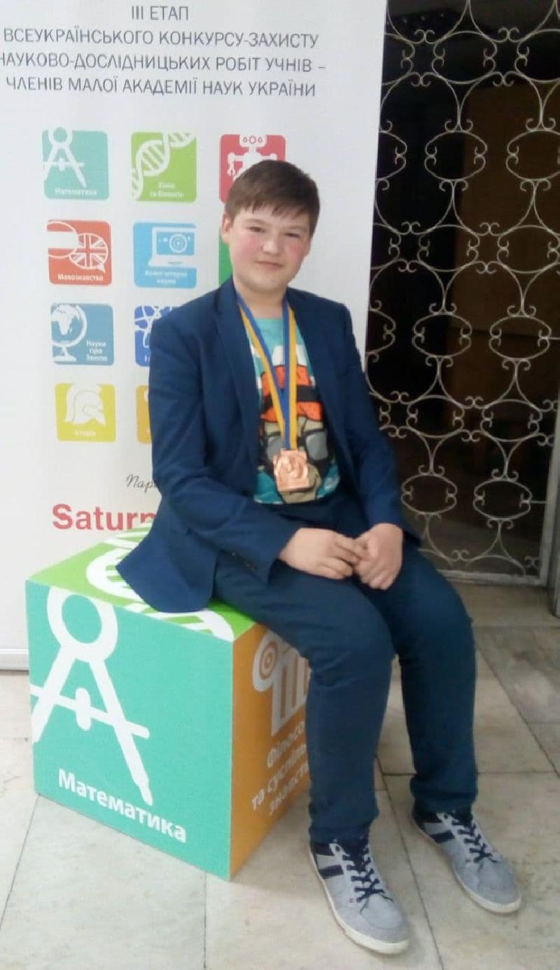 Цей творчий та енергійний юнак своїми досягненнями підтверджує вислів «Про свої здібності людина може дізнатися, тільки спробувавши прикласти їх», адже був переможцем Всеукраїнських турнірів юних математиків, географів, винахідників і раціоналізаторів, обласної олімпіади з математики та інших інтелектуальних конкурсів МАН.