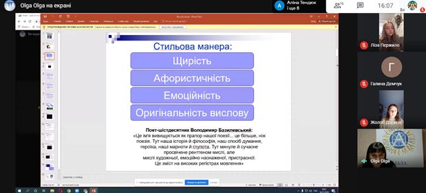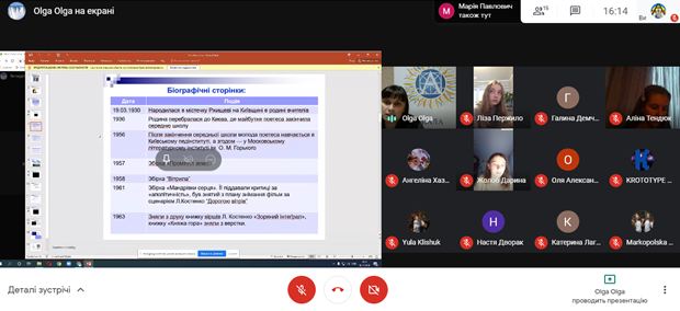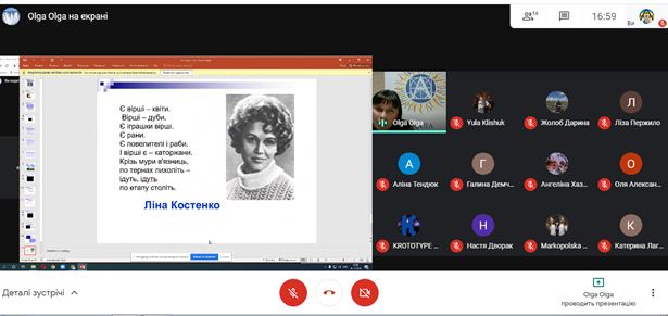 Слухачі мали можливість ознайомитись із біографічними фактами поетеси, її життєвими принципами та переконаннями. Щемливо-чуттєвою виявилась частина заходу, де учні читали вірші Ліни Костенко, роздумували над тематично-ідейним наповненням, роллю митця у суспільстві та державі.