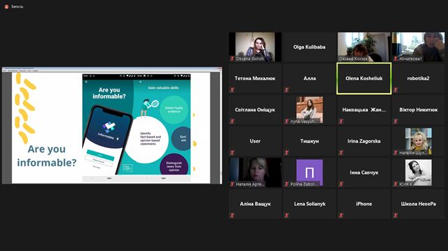 Під час онлайн-зустрічі слово мала Михалюк Тетяна, директор Волинської обласної МАН, яка акцентувала увагу на потрібності медіаграмотності у всіх сферах сьогодення. Навчитись орієнтуватись у медійному просторі, фільтрувати інформацію, помічати маніпулятивні інформаційні дії можна лише володіючи навиками медіаосвіти.
