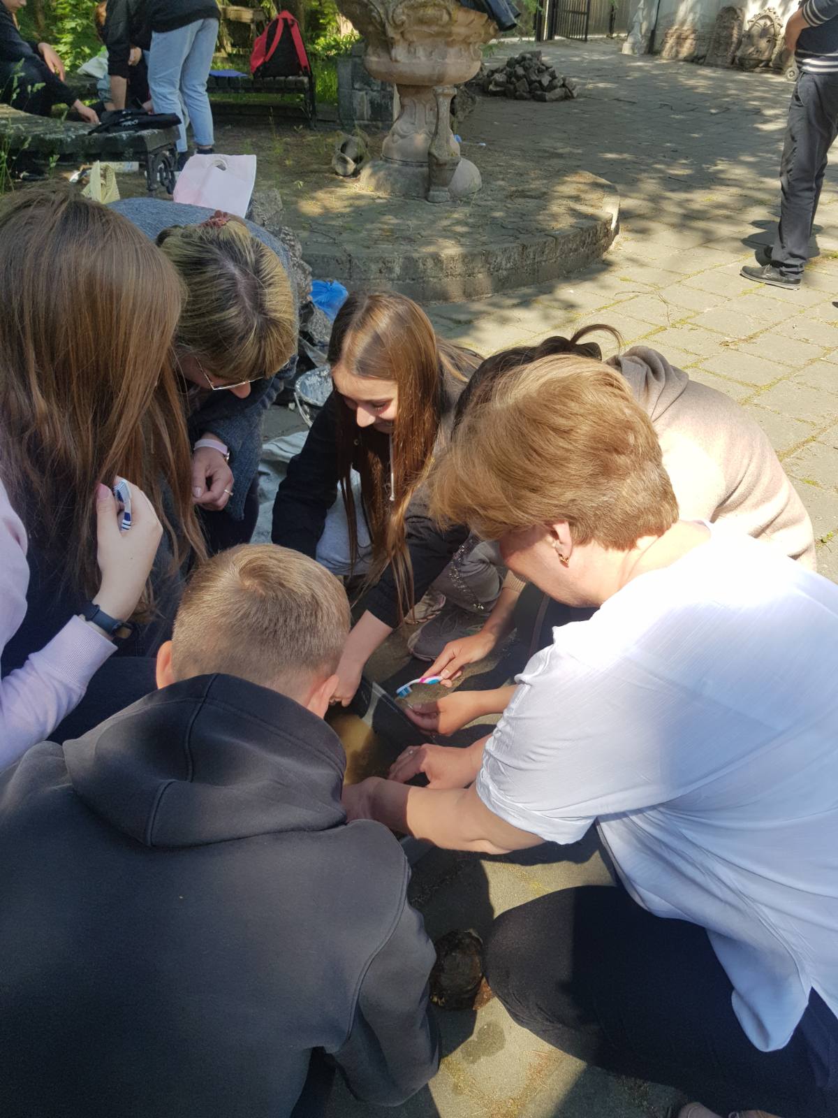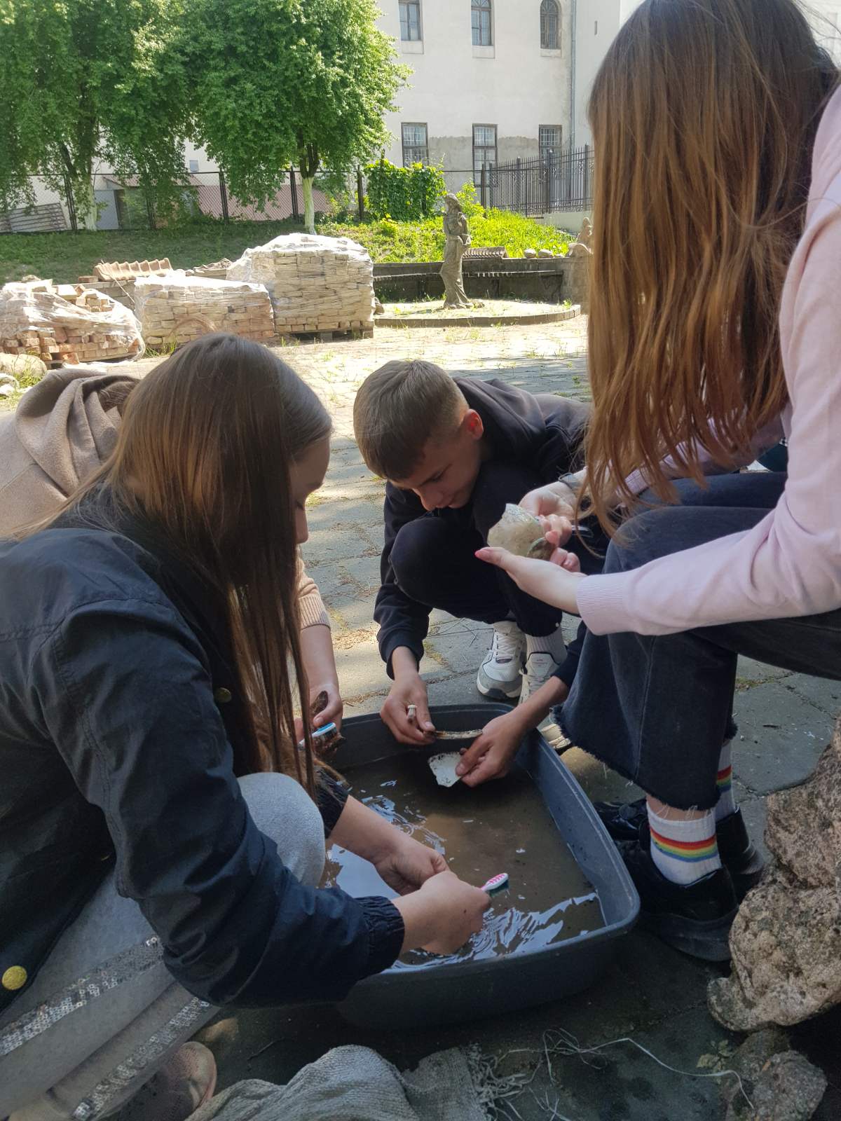 Юні археологи мали змогу попрацювати безпосередньо із рухомим археологічним матеріалом із підземель єзуїтського колегіуму та Башти князів Чарторийських. Адже археологічні дослідження передбачають не лише безпосередньо розкопки - особливо важливим є вивчення та опрацювання знайденого археологічного матеріалу.