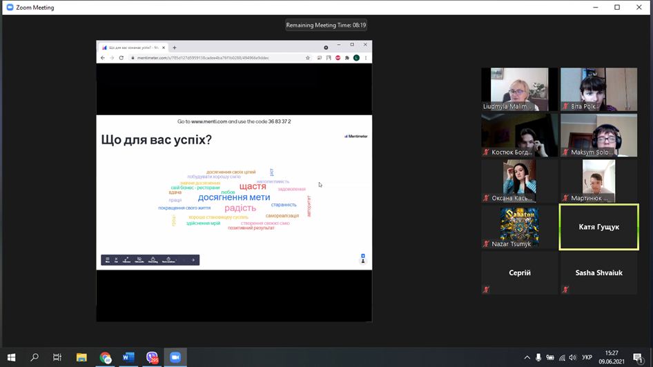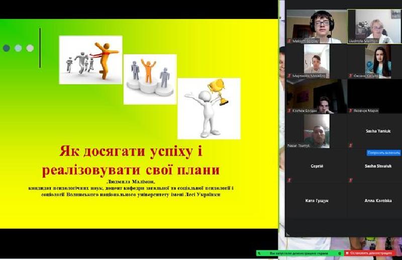Ці та інші питання учасники літніх шкіл Волинської обласної МАН обговорювали 2 та 9 червня 2021 року разом з Людмилою Малімон, кандидатом психологічних наук, професором кафедри загальної і соціальної психології та соціології ВНУ імені Лесі Українки на інтерактивній лекції “Як досягати успіху й реалізовувати свої плани”.
