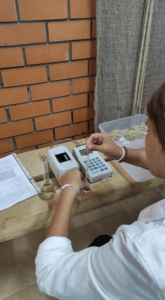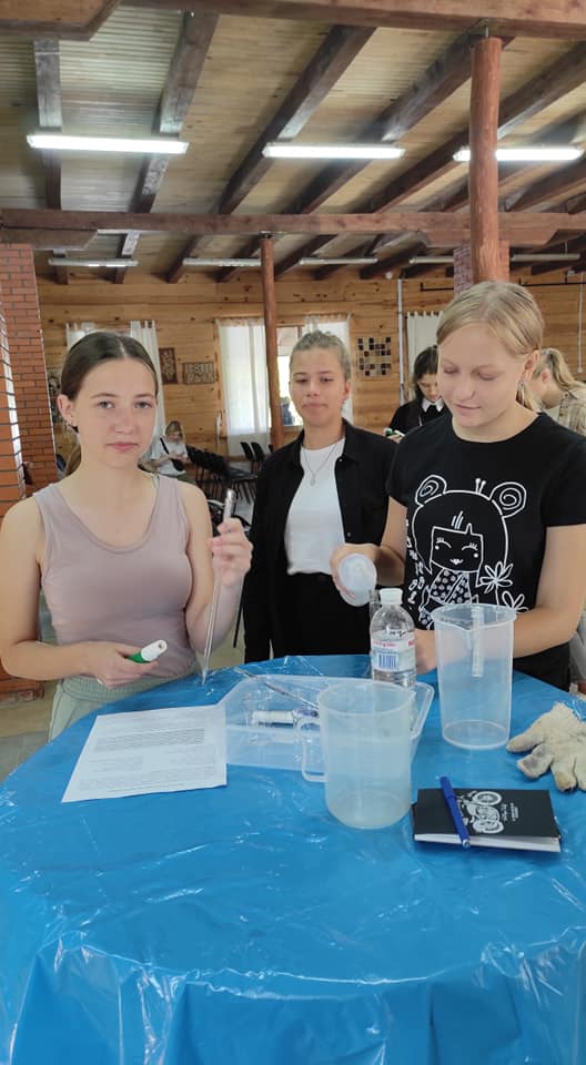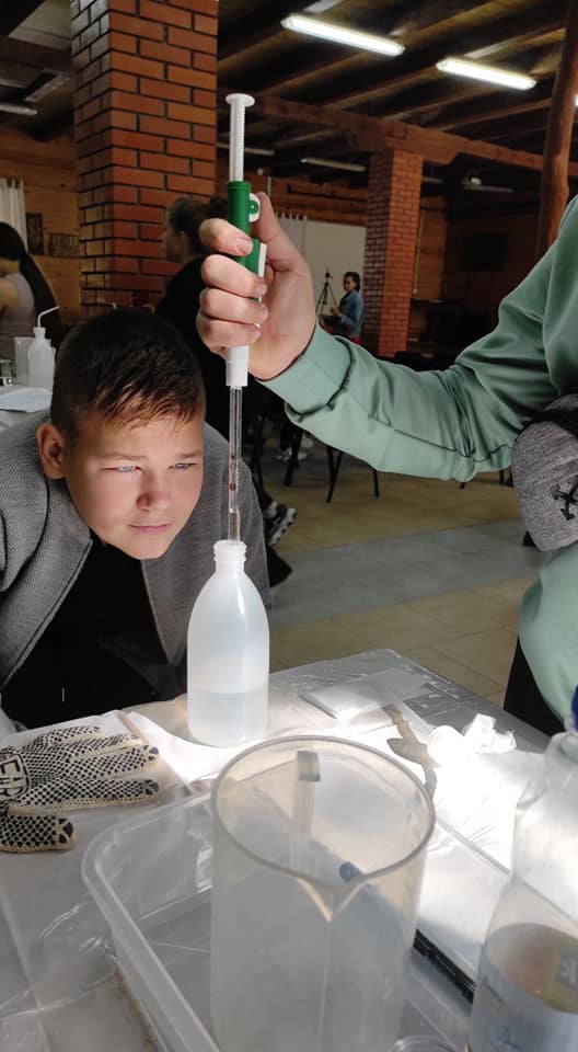 Учні працювали зі зразками води, зібраних в різних водоймах області, досліджували їхній стан, аналізували якість води за різноманітними показниками. Вчились користуватись портативними аналізаторами повітря, тепловізорами та іншими дослідницькими приладами.