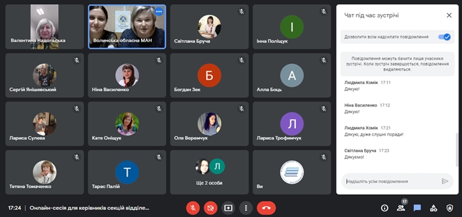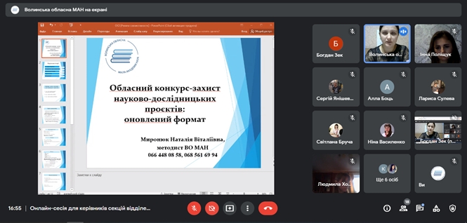 Учасники онлайн зустрічі  отримали інформацію про перспективні напрями досліджень, пошук джерел, методологію проведення дослідження, основні зауваження до науково-дослідницьких робіт, які представляються на захист та шляхи їх уникнення, ознайомилися з можливостями залучення учнів до конкурсів та проєктів різного  рівня.