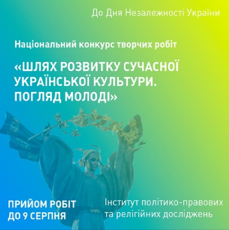 Інститут політико-правових та релігійних досліджень з нагоди відзначення 30-ї річниці Незалежності України проводить Національний конкурс творчих робіт (есе) «Шлях розвитку сучасної української культури. Погляд молоді»