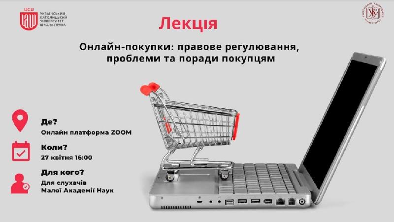 Дорогі слухачі Малої Академії наук, Юридична клініка Школи права Українського католицького університету запрошує вас до участі в інтерактивному zoominaр-тренінгу “Онлайн-покупки: правове регулювання, проблеми та поради покупцям”. Цей тренінг підготували спеціально для слухачів Малої Академії наук.