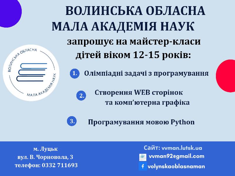 Майстер-класи для дітей з програмування : Волинська обласна Мала академія наук