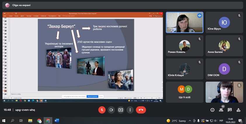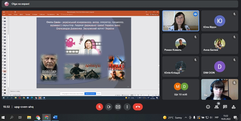 Слухачі ознайомились з історією українського кінематографа, творчою діяльністю українських кінорежисерів, сучасним станом кіномистецтва та основними принципами кінематографії. Оскільки одним із принципів кіноіндустрії  є апелювання до гуманізму, добра, чесності, співчуття, то під час онлайн-зустрічі учасники намагались осмислити поняття сповна. Крізь призму різножанрових фільмів і тематичного розмаїття учні змогли простежити еволюцію українського кіноконтенту та уподобання глядачів.