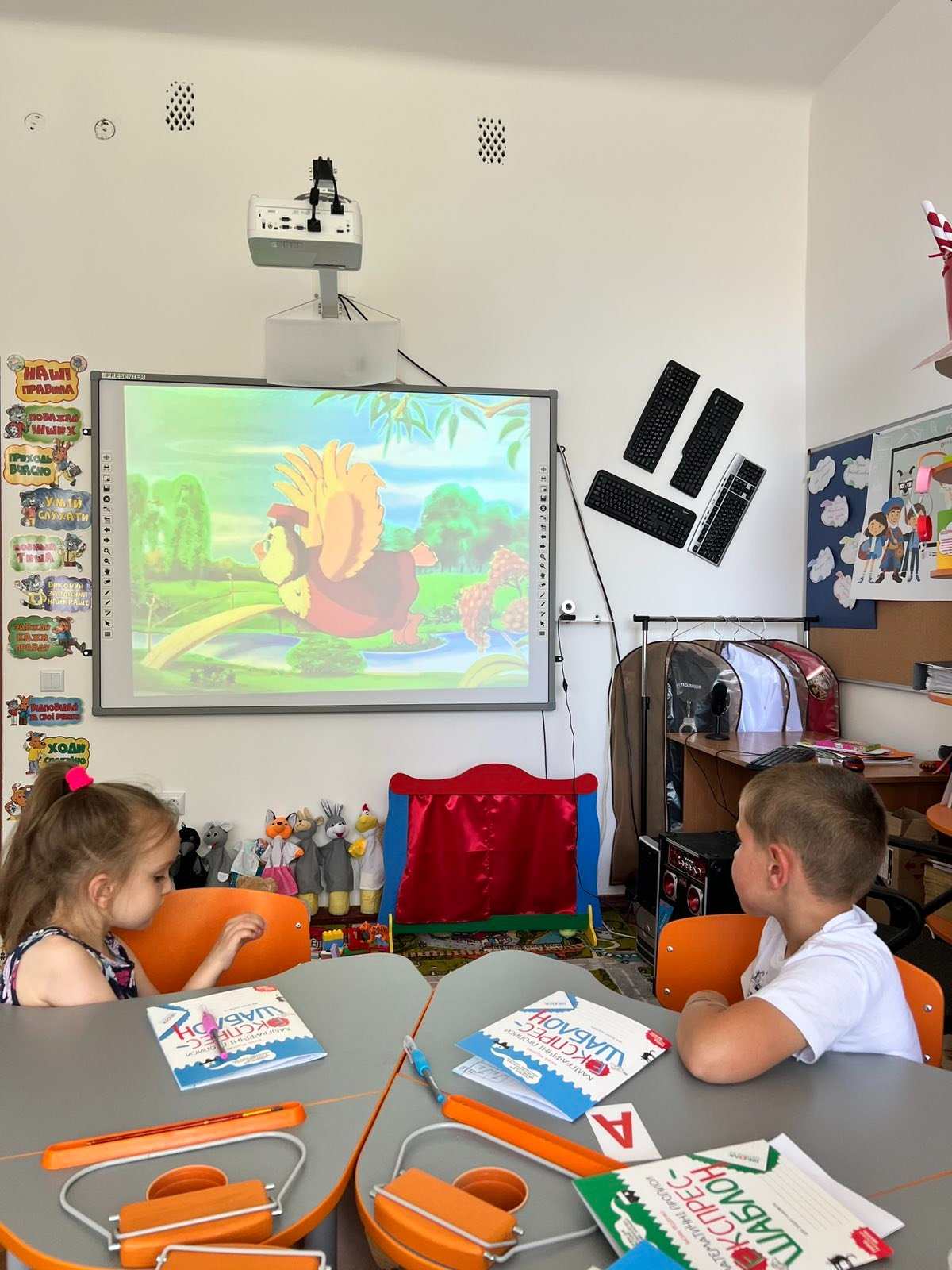 Чудові дітки наших героїв сумлінно писали свої перші літери та цифри.
