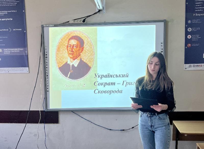 Слухачі мали можливість почути багато цікавих фактів про Григорія Сковороду та поділитись своїми знаннями, провели цікаву вікторину для закріплення знань.