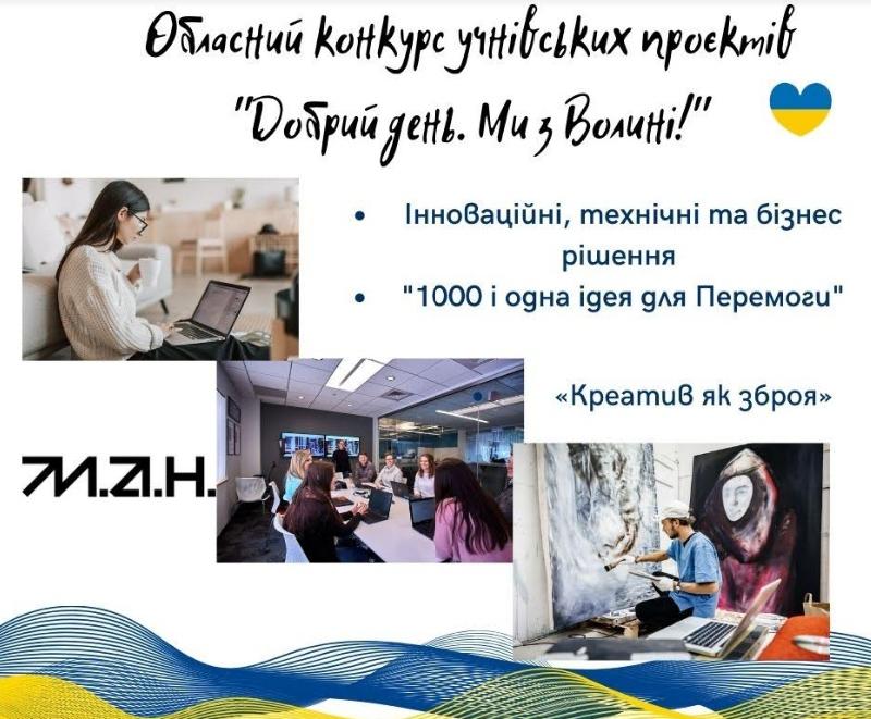Волинська обласна МАН, спільно з партнерами: управлінням освіти і науки Волинської облдержадміністрації, Волинським національним університетом імені Лесі Українки та Луцьким національним технічним університетом, оголошує новий обласний конкурс учнівських проєктів «Добрий день. Ми з Волині!».