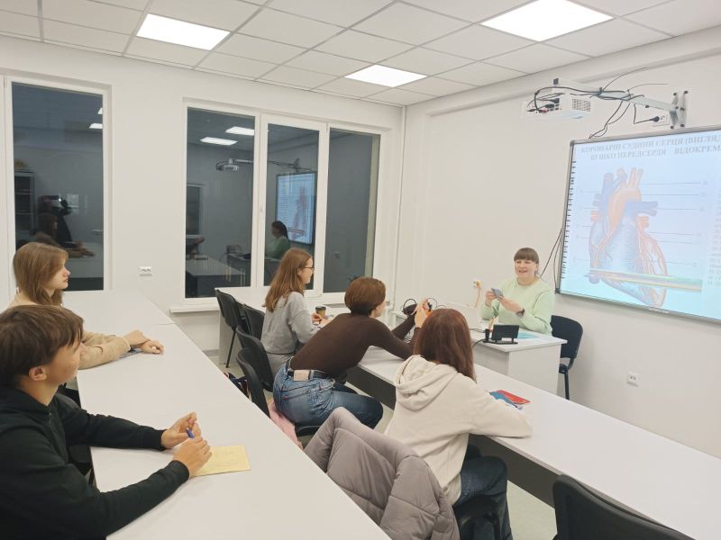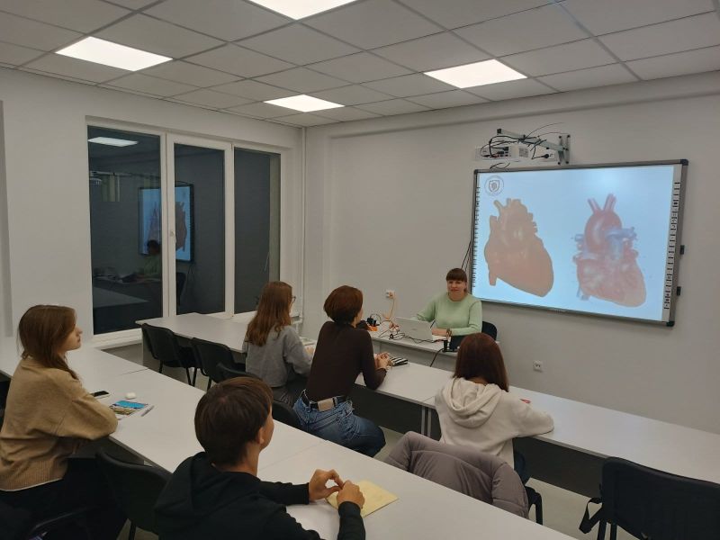 На муляжах-серцях у розрізі розглядають оболонки серцевого м’язу та камери серця. На анатомічному столі 3D зображень опановують та досліджують провідну систему серця, а також роботу клапанного апарату.