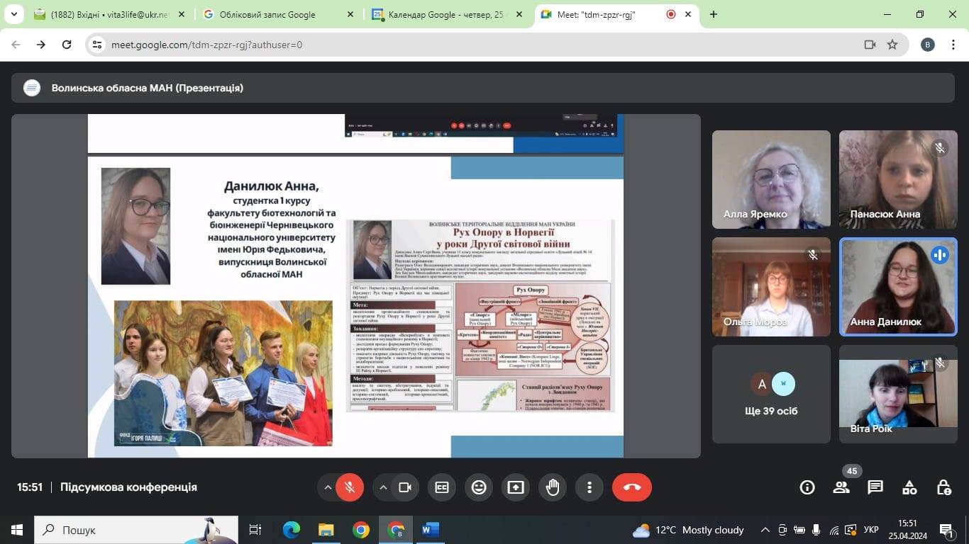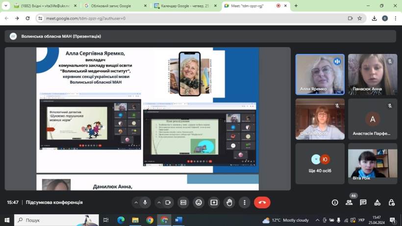 25 квітня завершила свою роботу підсумкова конференція "Юний науковець року", яка об`єднала слухачів стаціонарних секцій та гуртківців заочно-дистанційної школи Волинської МАН.