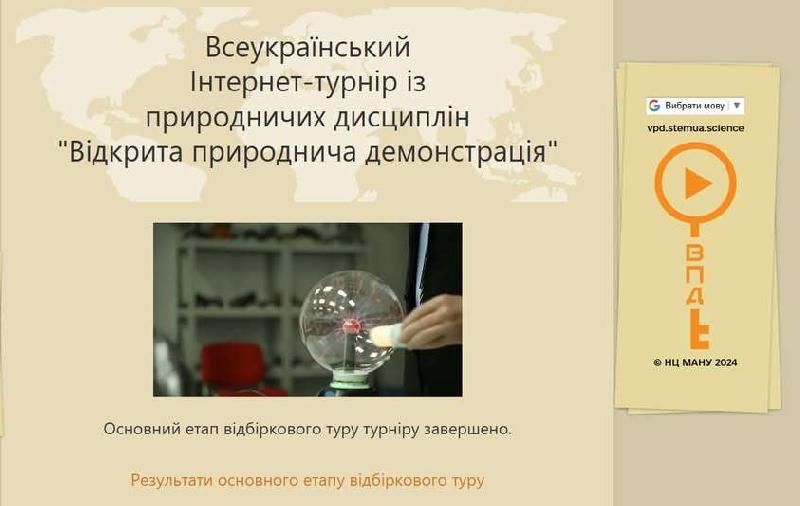 У жовтні-листопаді 2024 року Національним центром Мала академія наук України проведено кваліфікаційний та основний етапи ХV Всеукраїнського Інтернет-турніру з природничих дисциплін.