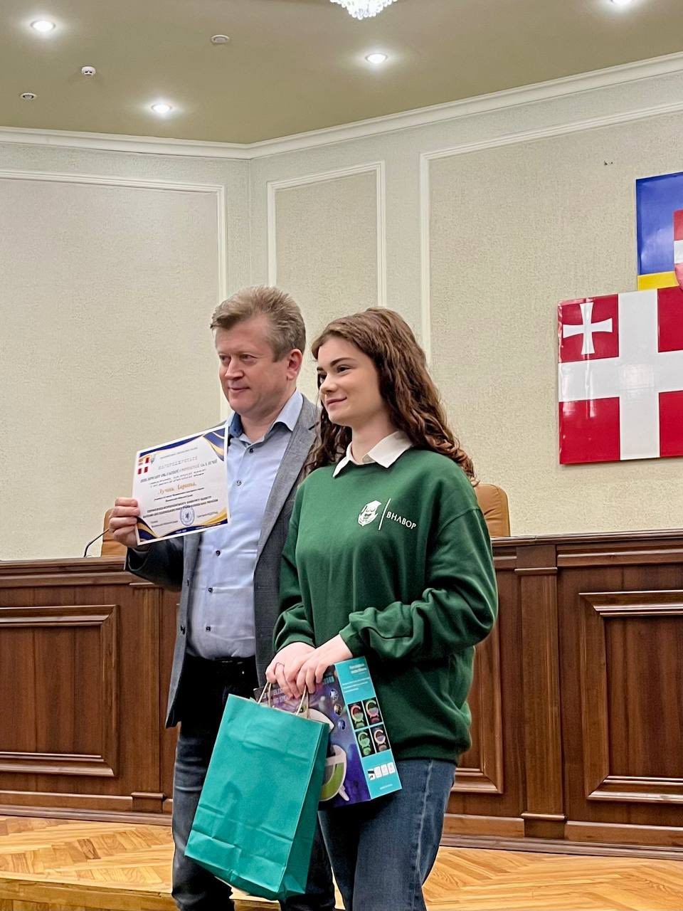 Із вдячністю до всіх присутніх звернулася учениця Заборольський ліцей Луцької міської ради Іванна Хотинська, яка розповіла свою історію успіху у Волинській МАН та передала символічний символ перемоги юним МАНівцям Ангеліні Шкуринській та Богдану Мажулі.