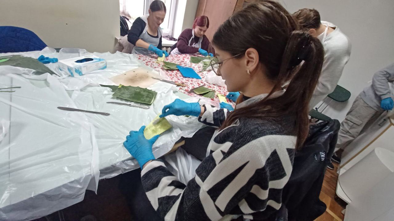 Учасники власноруч готують заготовки з рослинної сировини, відпрацьовуючи професійні навички.