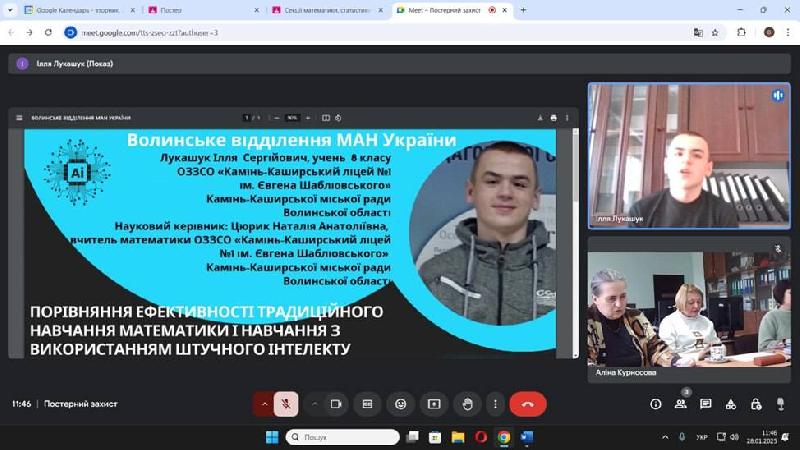 як-от: конгруенції, теорія графів, різні методи розв’язування олімпіадних задач, застосування векторів тощо, а й спробували свої сили у дослідженні впливу ШІ на вивчення алгебри та геометрії, статистичних показників коронавірусної інфекції та захворювань серцево-судинної системи.