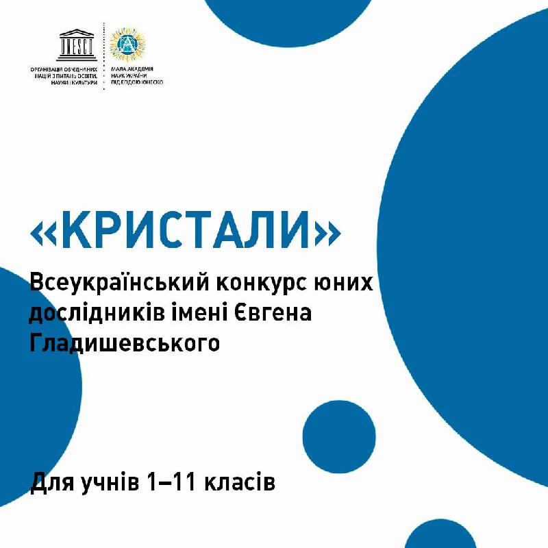 Всеукраїнський конкурс юних дослідників “Кристали” імені Євгена Гладишевського буде проведено у травні 2025 року.